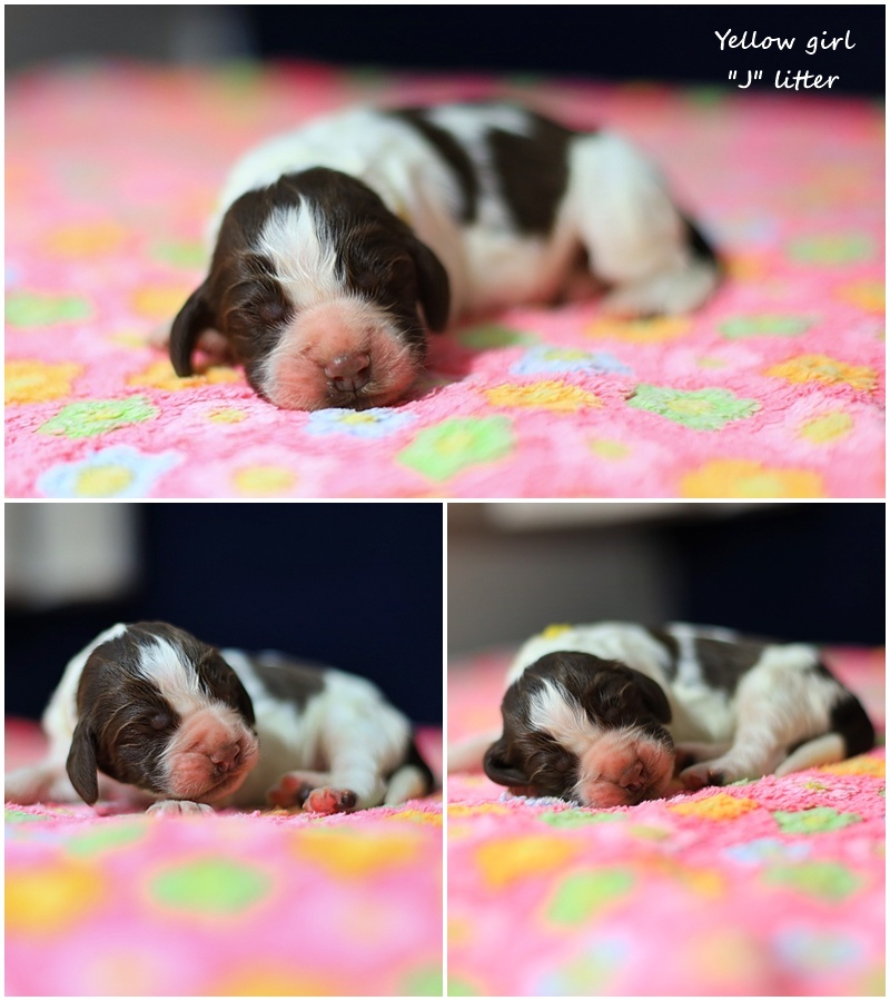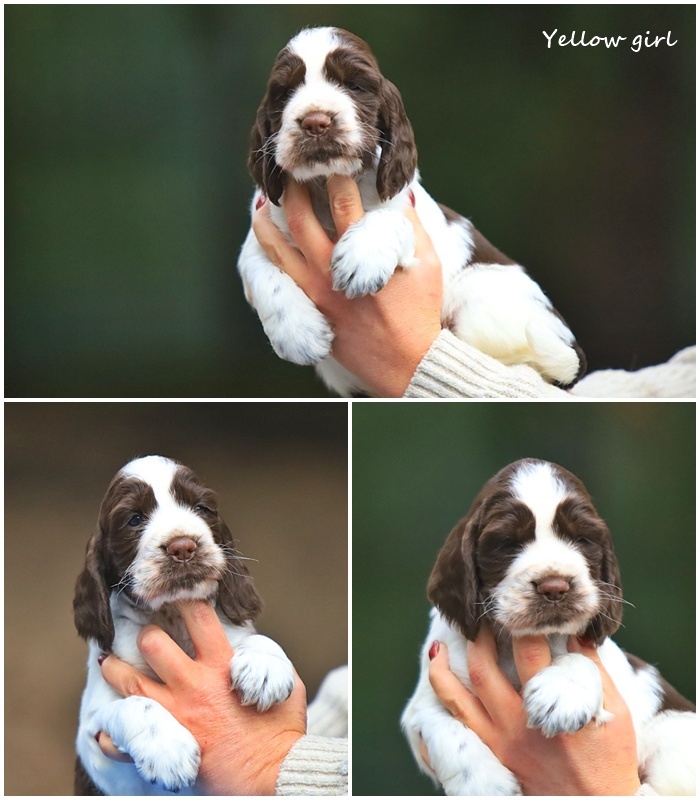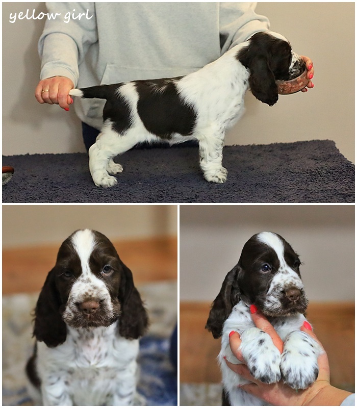 Jessica - tak więc w pażdzierniową noc pojawiła się ona, i choć moje 20 letnie doświadczenie nie pozwala zakochiwać się w nowo narodzonch dzieciać gdyż rozwój szczenięcia, selekcja hodowlana to proces złożony - tym razem zakochałam się od pierwszego wejrzenia. Ku mojej radości Jessica rosła pięknie, wręcz wspaniale, a jej temperament okazał się taki jak lubię najbardziej :) Przeznaczenie ? - na to wygląda. Ta mała, cudna springerowa dziewczynka rozświetla swoją osobowością każdy poranek. Jest niezwykle mądra, wpatrzona w człowieka i zrownoważona. Choć jest zdecydowaie kopią swojej mamy to po tacie odziedziczyła niepoprawny optymizm, ktory rozdaje garściami na każdym kroku. Jessica - nasz promyczek kochany, nasza nadzieja i spełnienie marzeń hodowlanych.